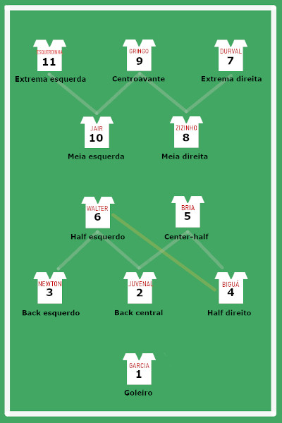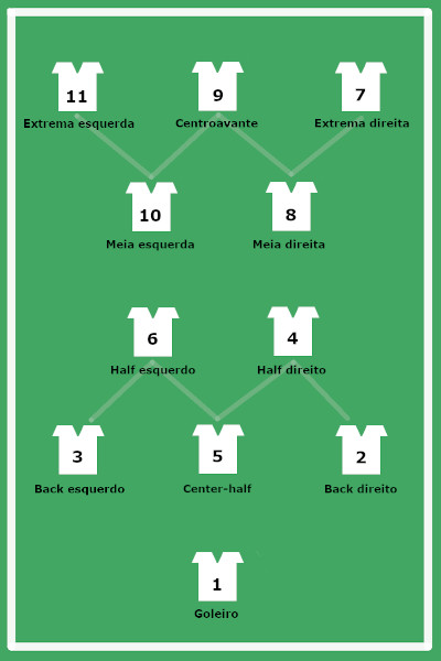 Em verdade, Biguá era "back" lateral direito, tanto quanto Augusto, e não "half" direito como indicava a sua numeração. Assim, também, Noronha "back" lateral esquerdo, o mesmo que Nílton Santos, embora na escalação se desse a Noronha a posição de médio esquerdo. E assim, sucessivamente.