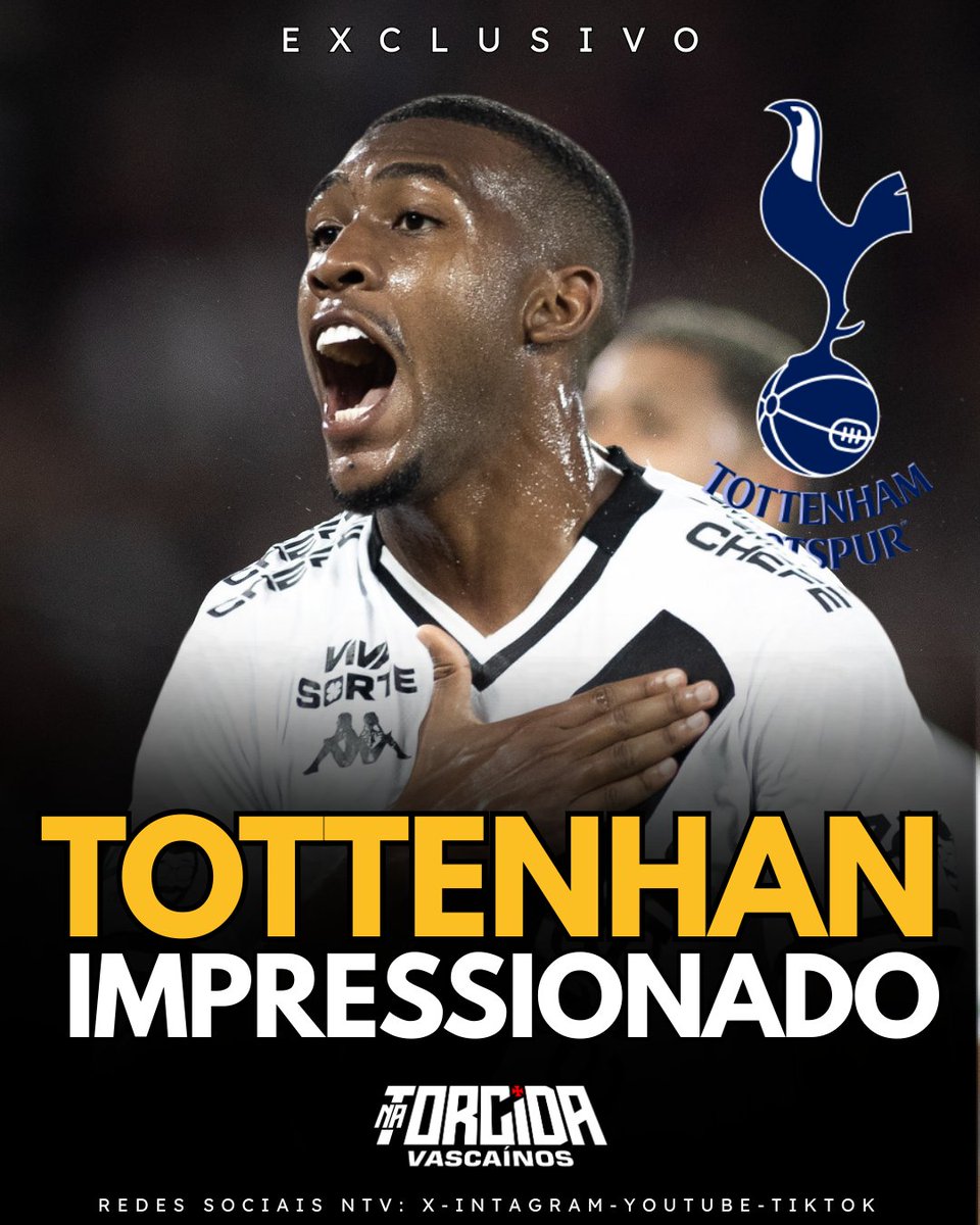 Os representantes do Spurs entendem que, para tirar Rayan do Vasco, não seria por cifras abaixo de 40 milhões de euros.