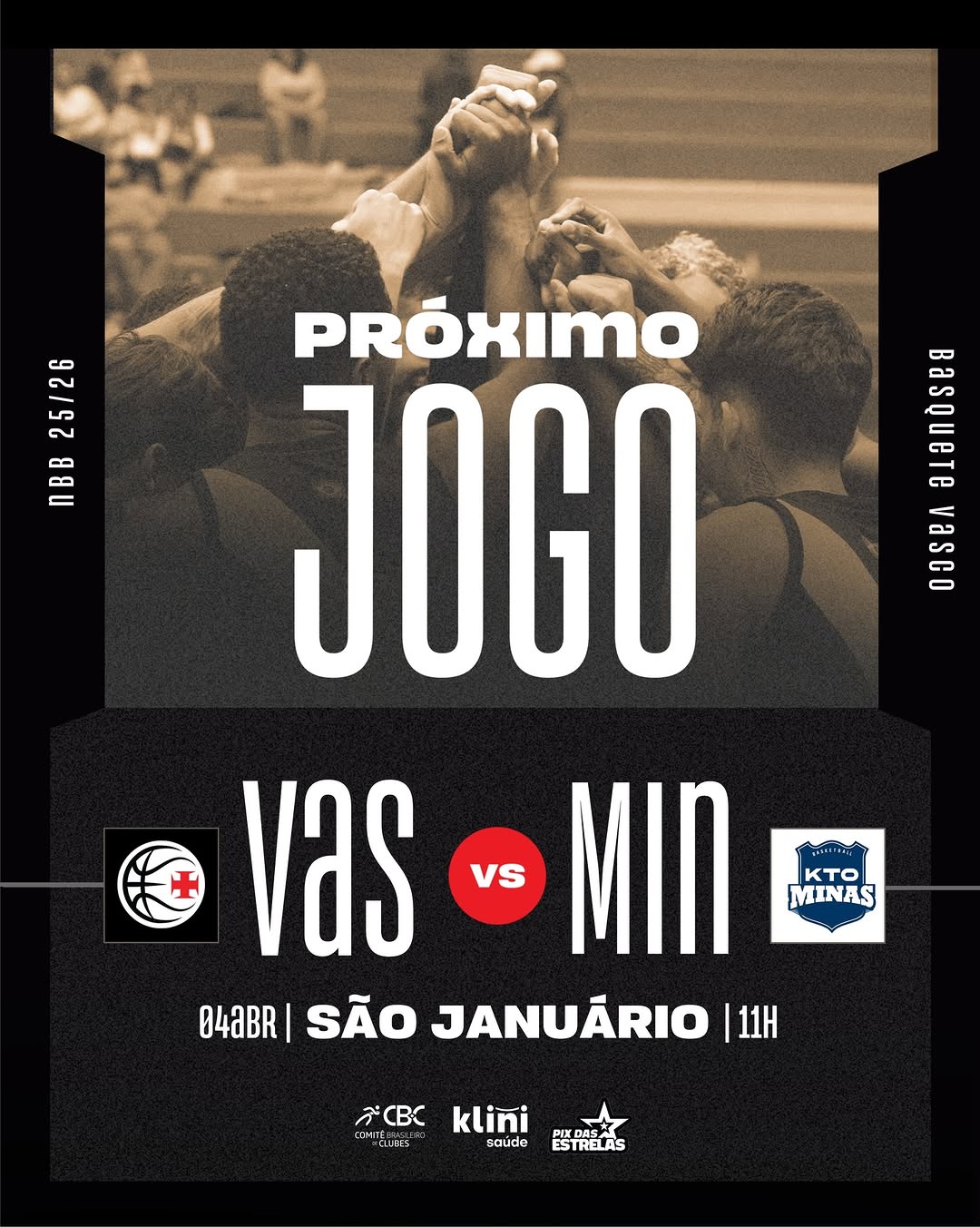 💢 Às 11h, o Vasco da Gama enfrenta o Minas Tênis Clube em São Januário, em mais um desafio pelo NBB CAIXA 25/26.