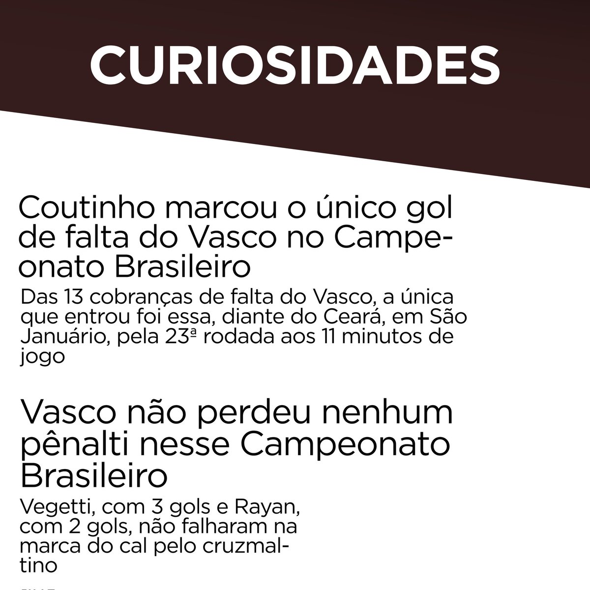 Vasco não perdeu nenhum pênalti no Brasileiro e só marcou 1 gol de falta, com Philippe Coutinho